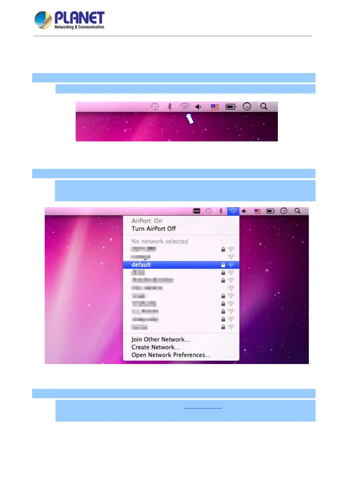 In the following sections, the default SSID of the VDR-301N is configured to “default”.