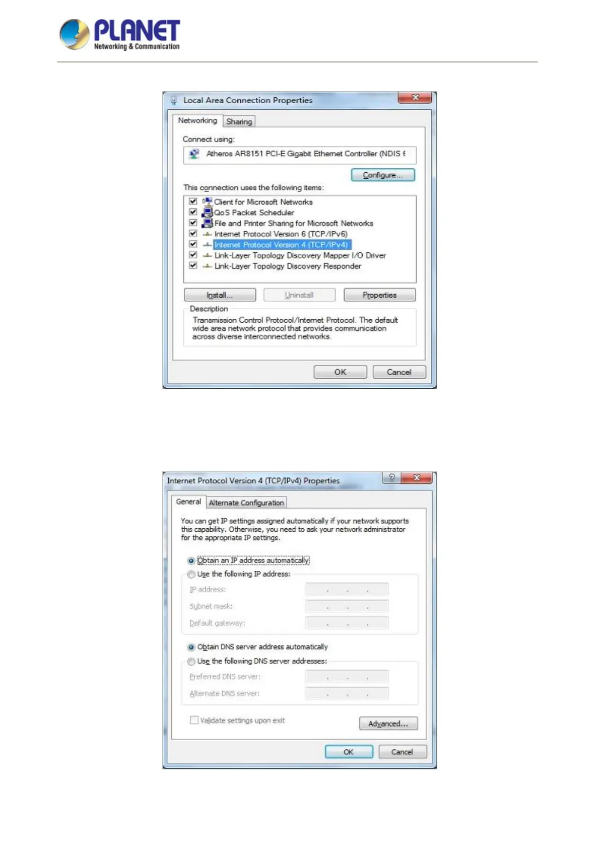 5. Select the Obtain an IP address automatically and the Obtain DNS server address automatically