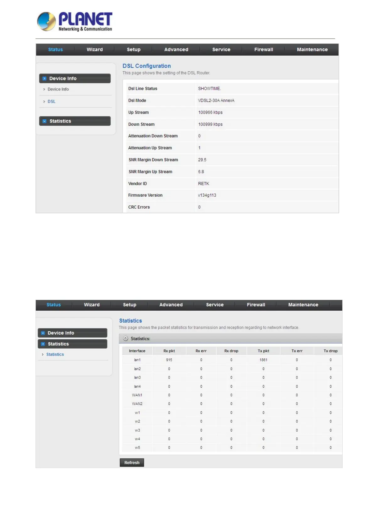 Choose Status > Statistics. Click Statistics in the left pane and the page shown in the following figure