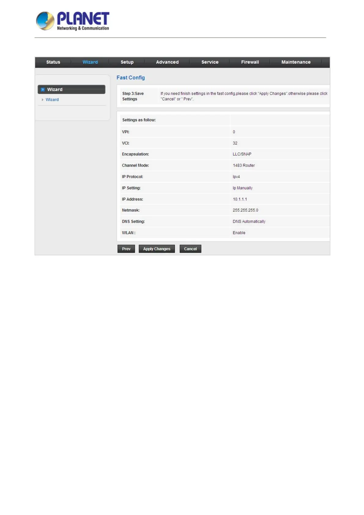 And click Apply changes to save the configuration.