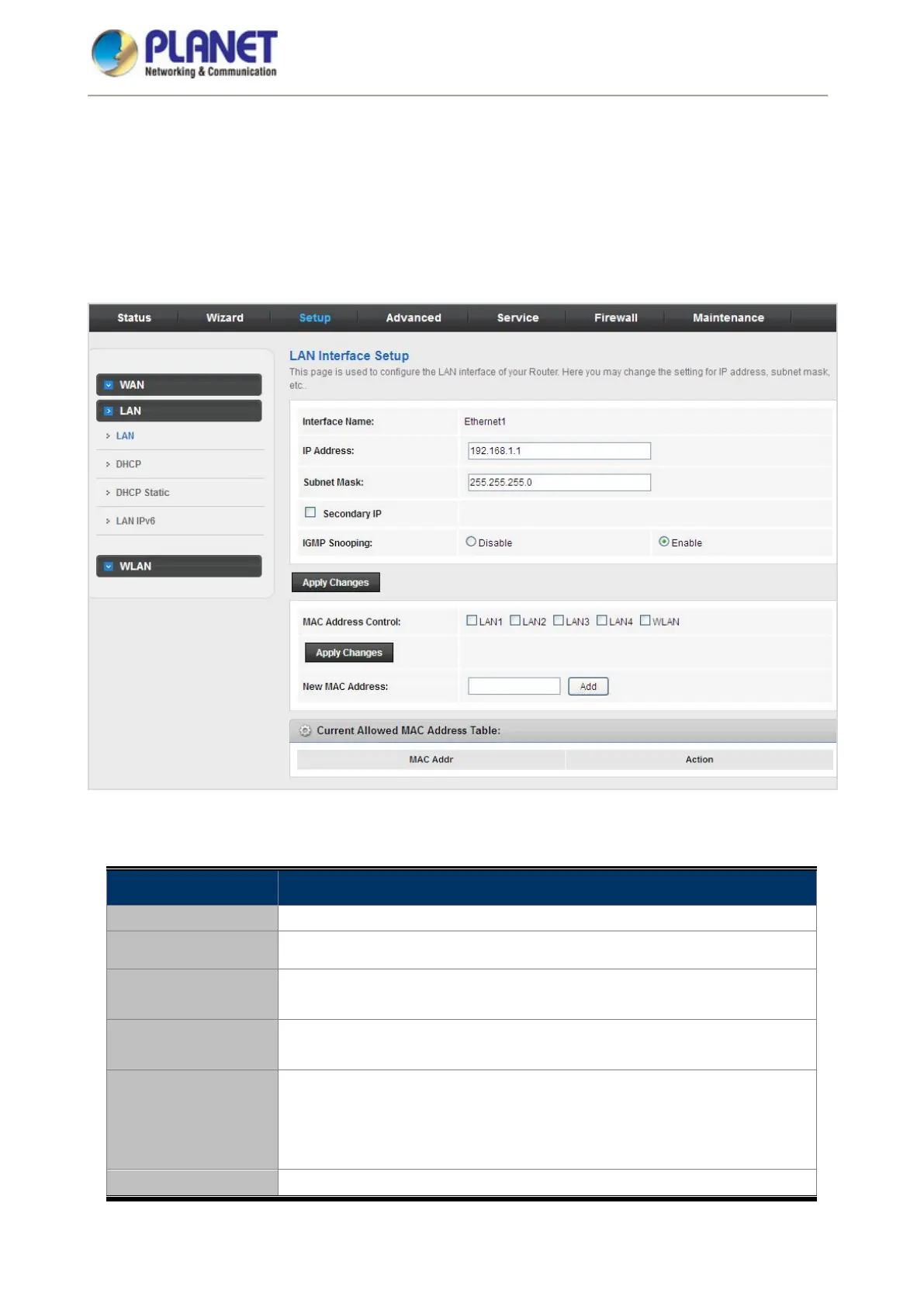 It is the access control based on MAC address. Select LAN1, LAN2, LAN3,