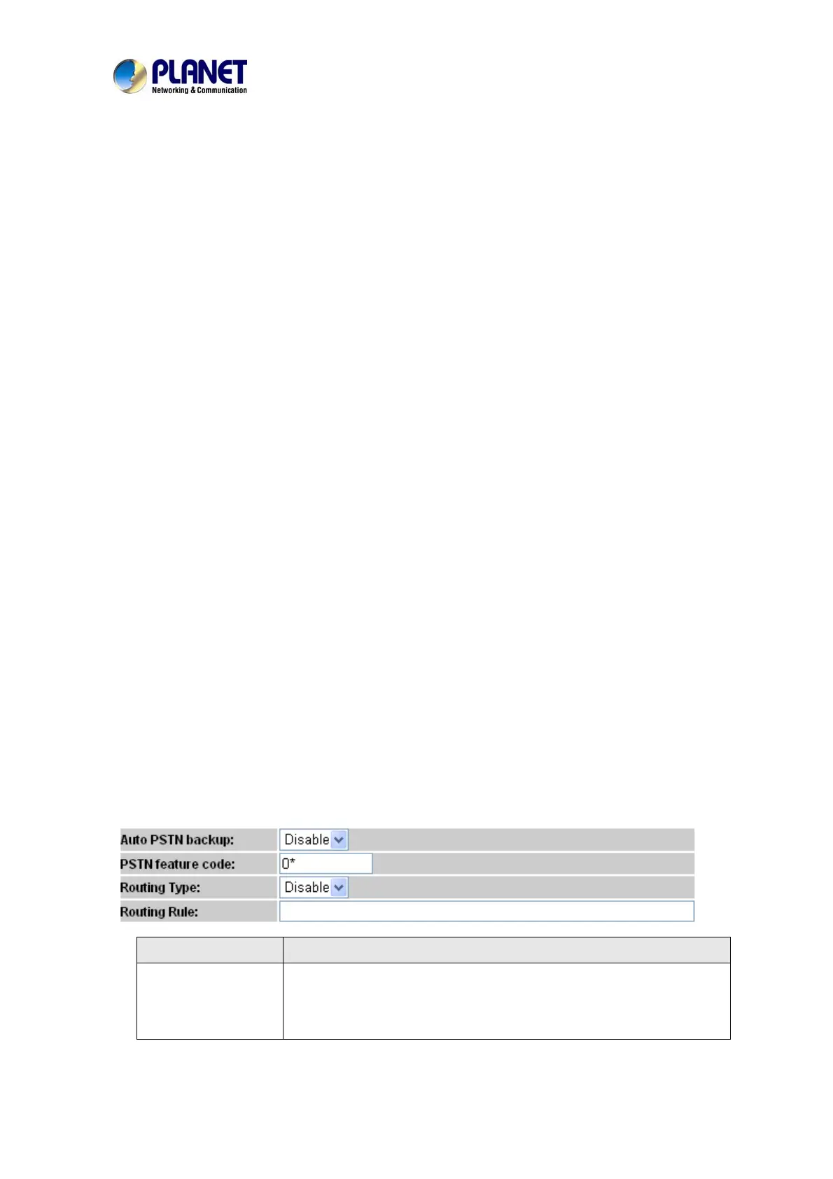 Default is Disable, it’s for PSTN backup function, when it “Enable”, if