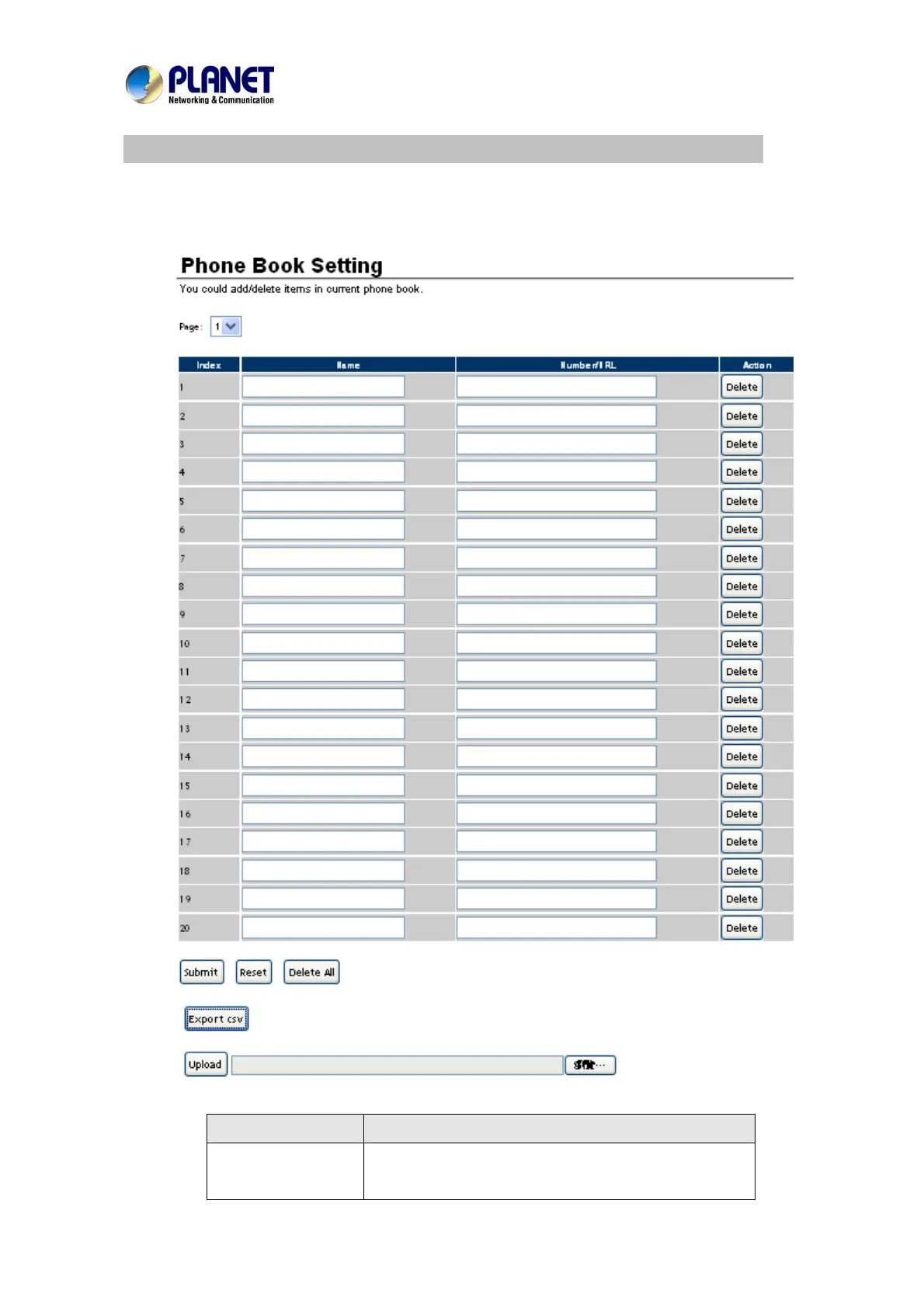 ATA can set up 140 records of Phone Book. User can dial the Name records to make calls via