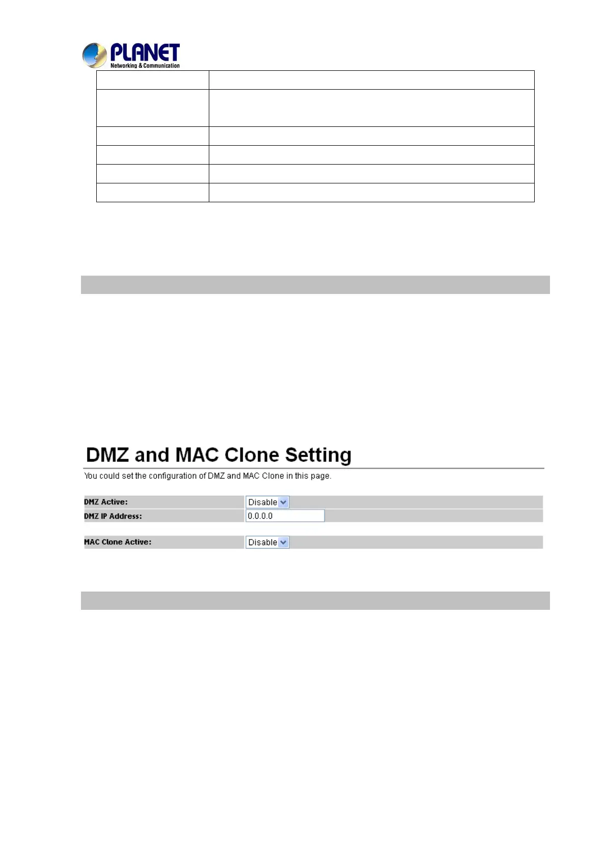 MAC Clone Activity: This page defines the MAC Clone Enable/Disable. This function will copy the