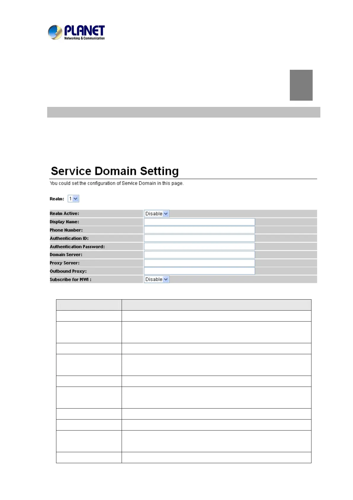 Service Domain Setting