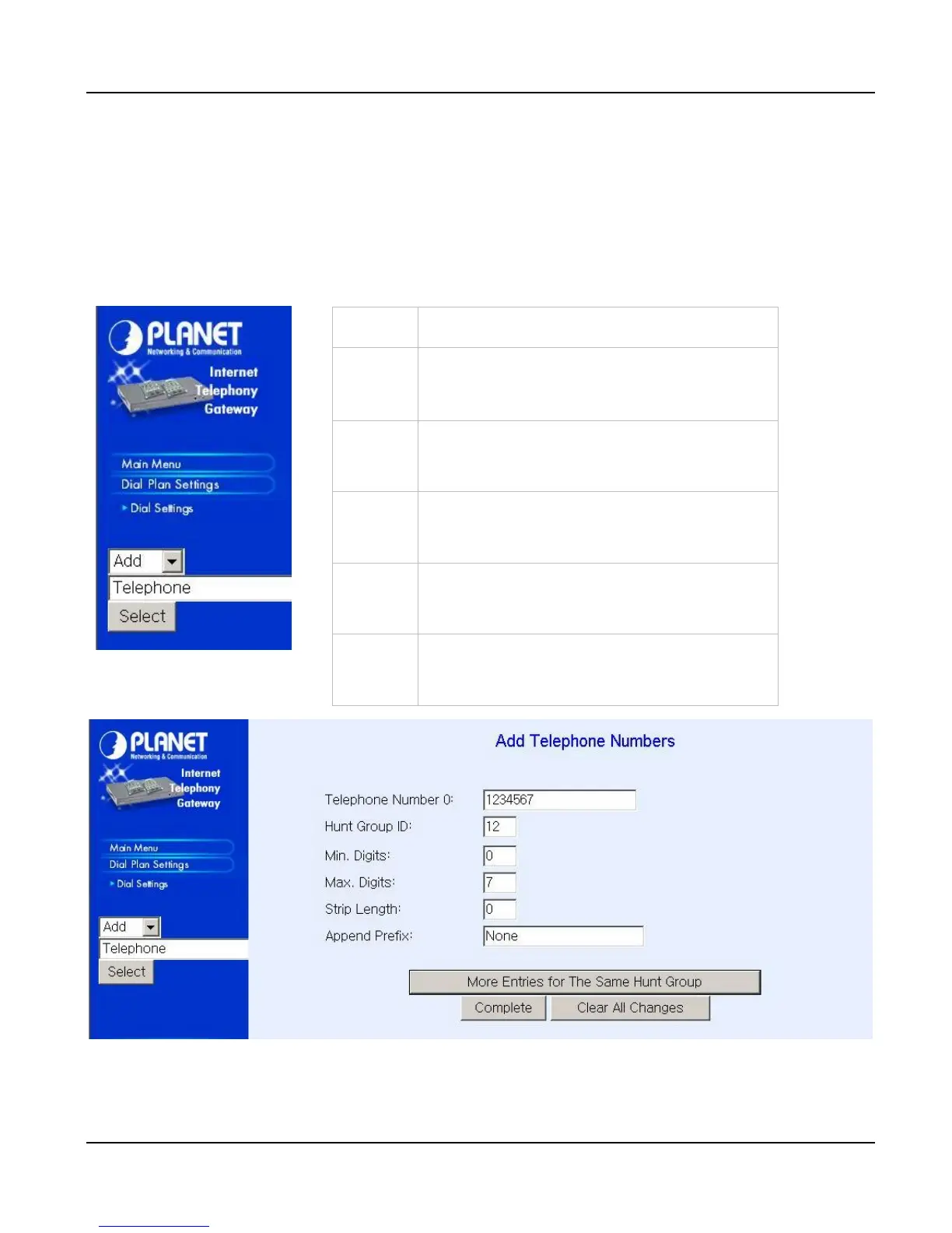 We can add (delete, find or list) desired telephone number mapping to hunt group at this menu.