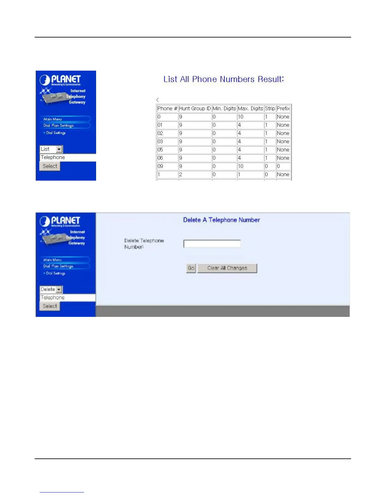 To delete / find a Telephone, select the option and telephone, you can key in the phone number to find