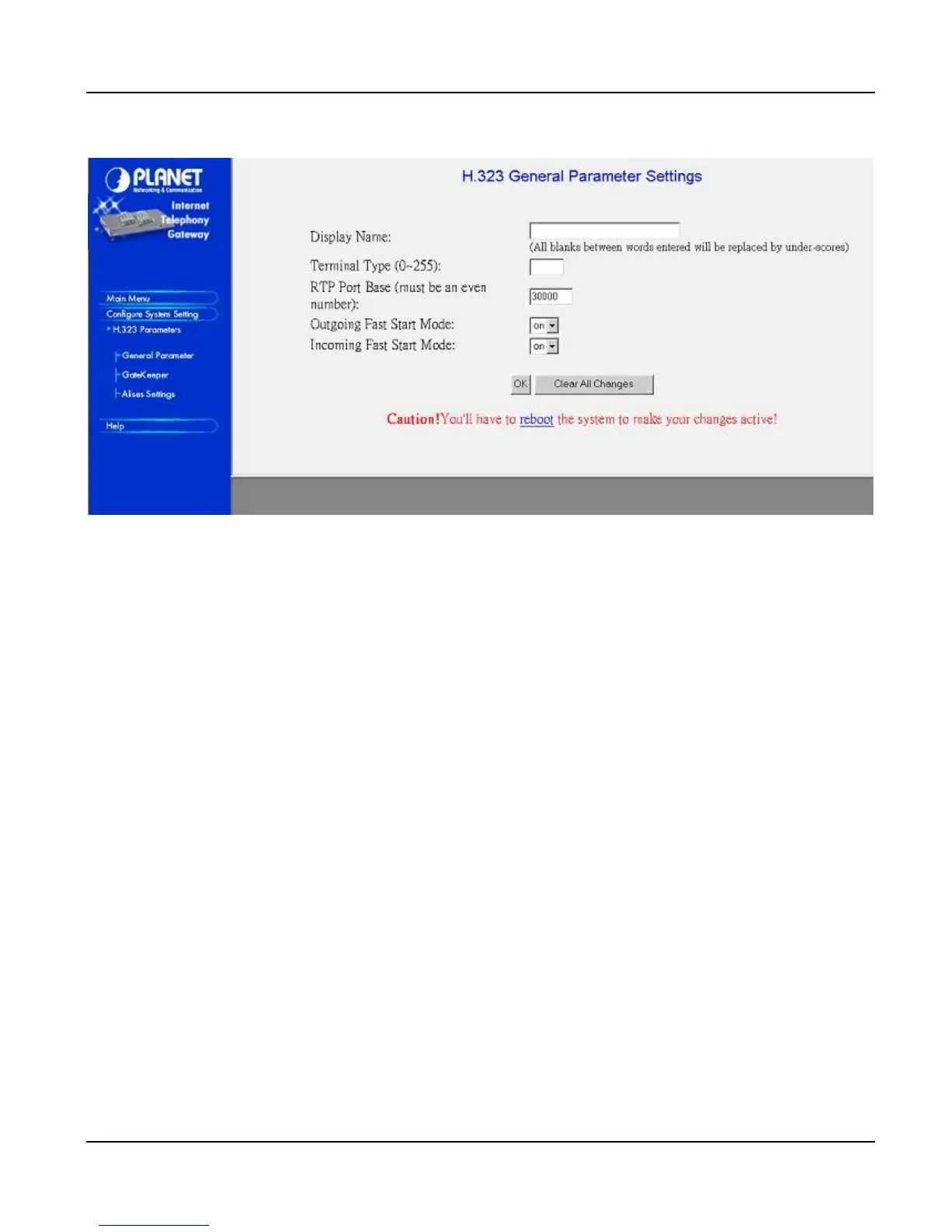 This field is to set the display name information that is carried in the H.323 setup messages. Up to 48