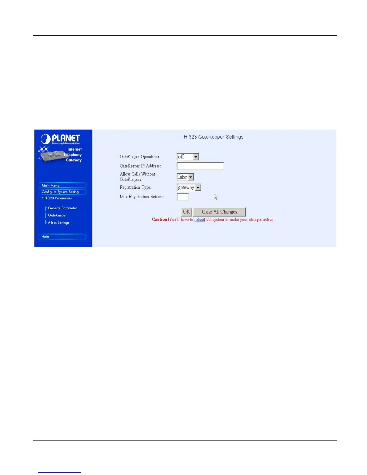 Gate Keeper Address: Specify the gatekeeper address when configured to manual mode. When auto