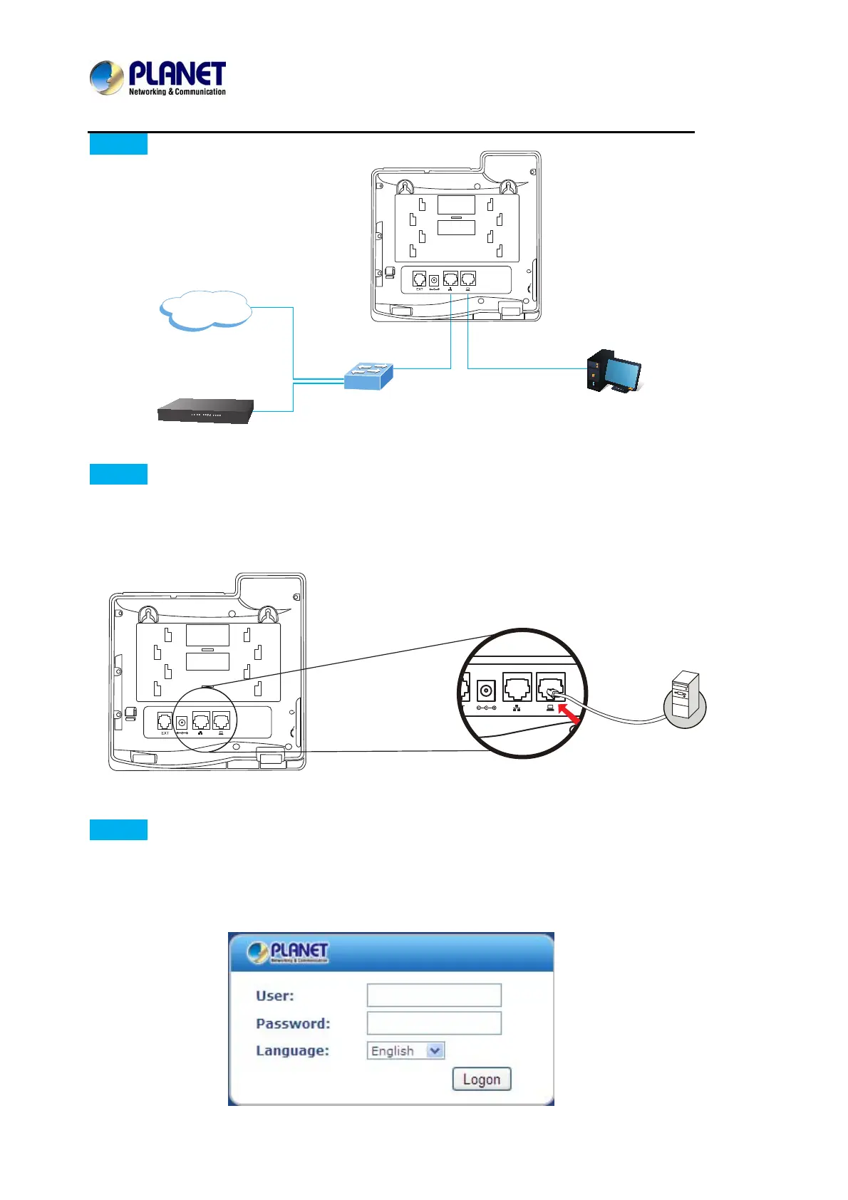 network administrator. Connect your PC to VIP-2020PT PC port.