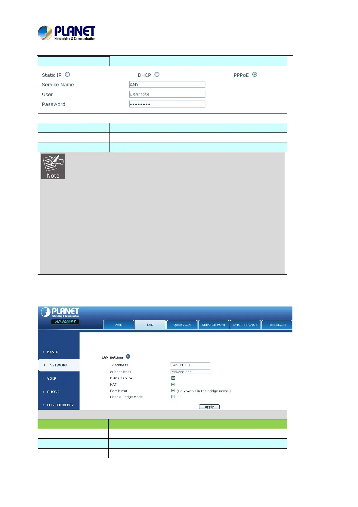 used by LAN of system, system will use the DHCP IP to set WAN, and modify LAN’s