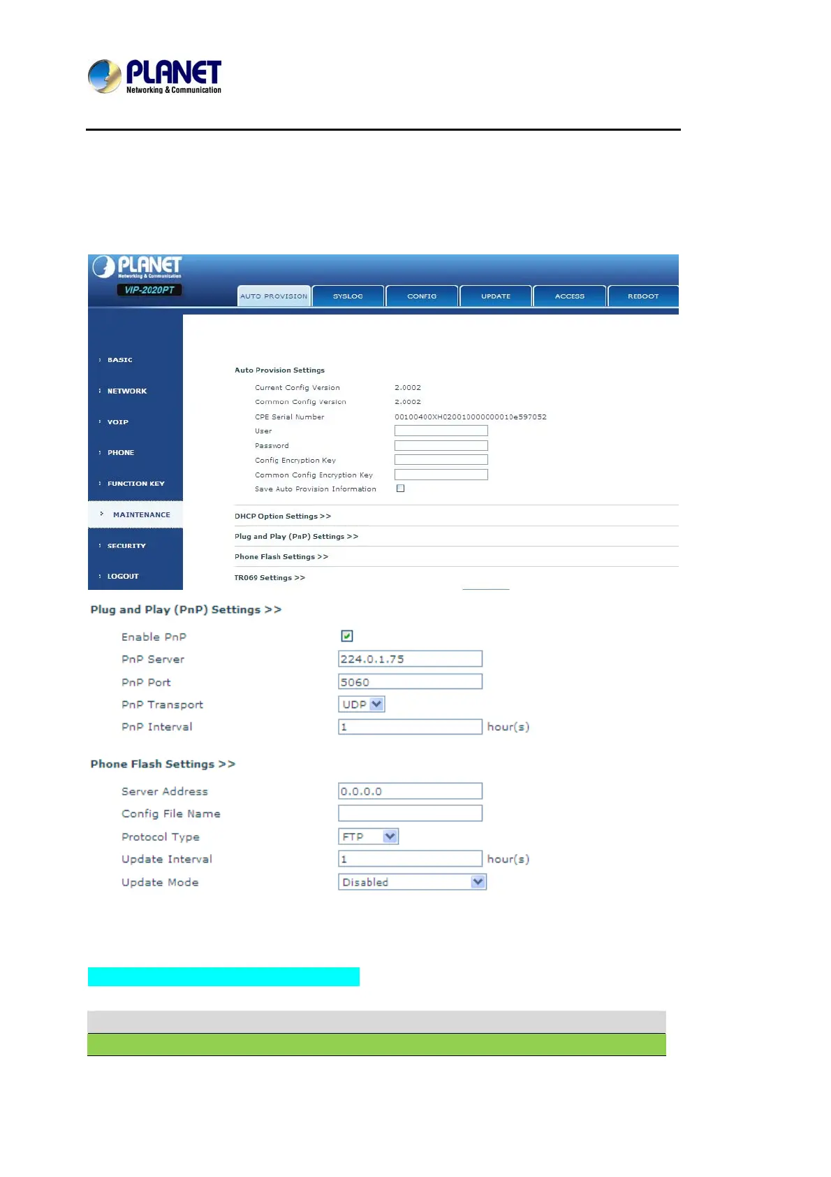 Planet endpoint supports PnP and DHCP and Phone Flash to obtain the parameters. The PnP