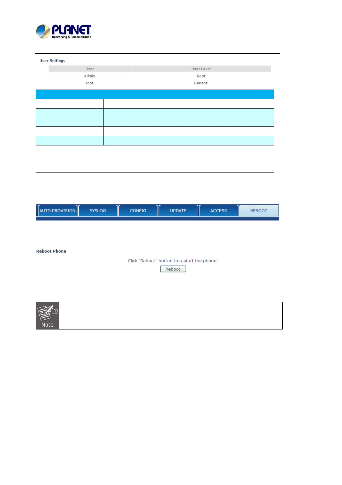 Set user level, Root user has the right to modify configuration,