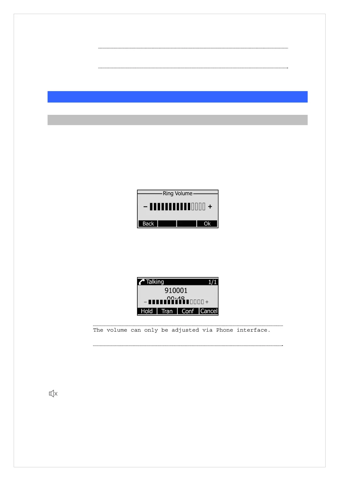 2. Scroll to Ring Volume, and press Enter hot key, use the MUTE/MESSAGE key to adjust the