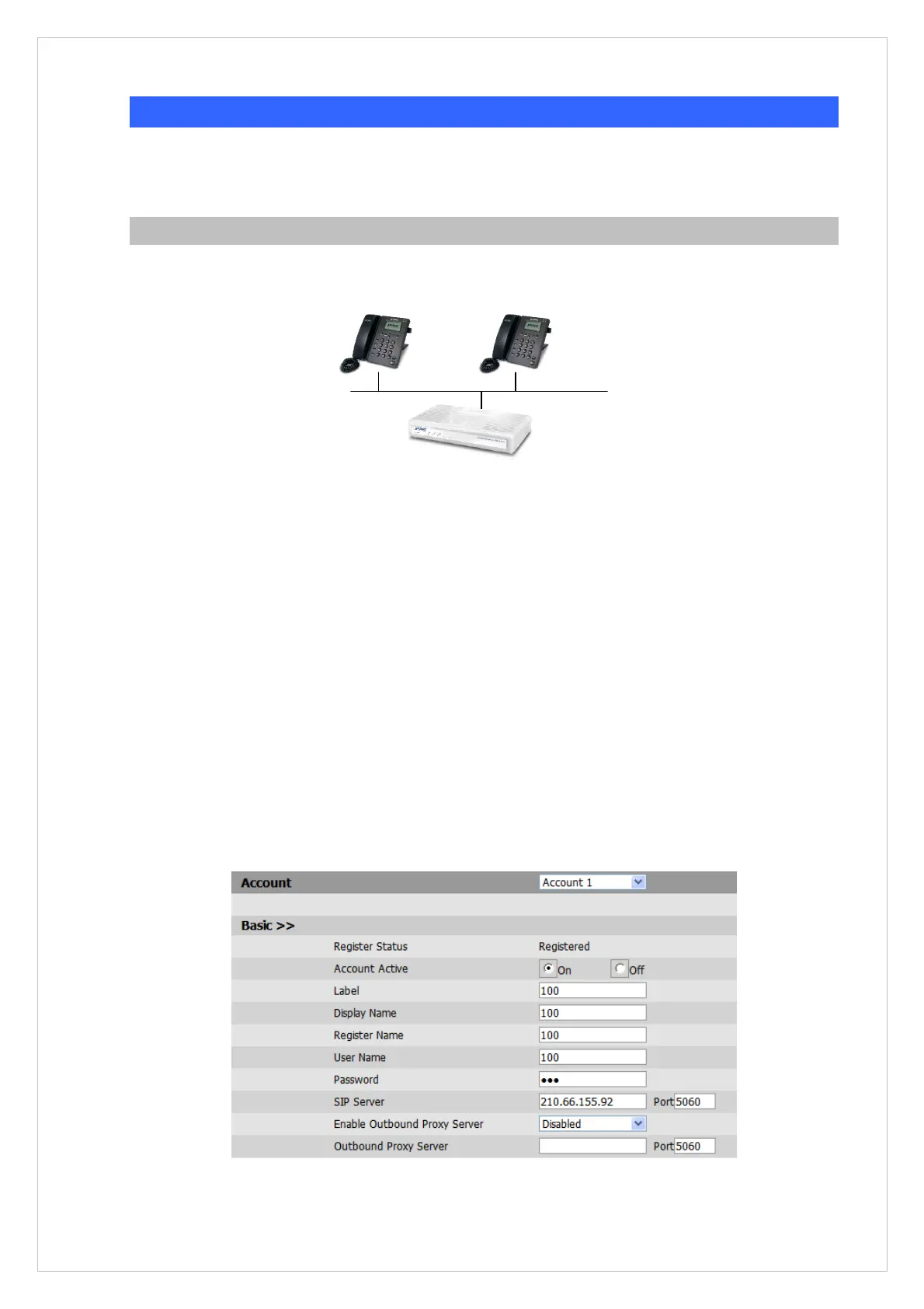 PBX system for SIP account, call authentications), and then the sample configuration screen