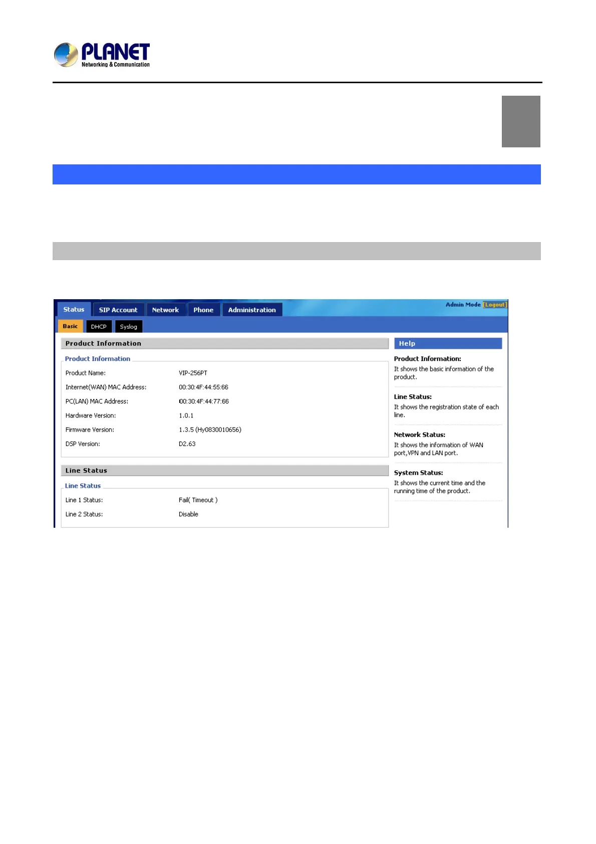Planet VIP-256PT - Chapter 4 VoIP IP Phone Status
