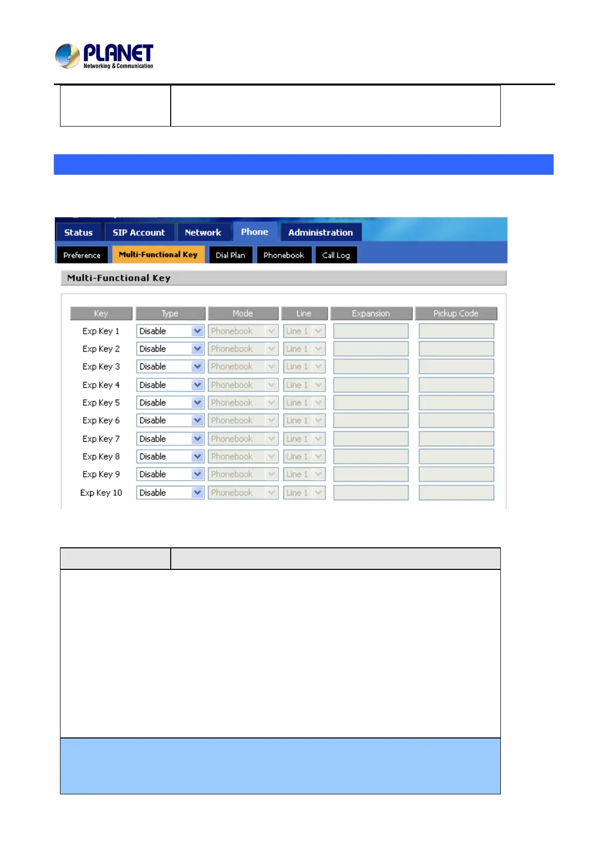 In here user can program the Multi-Function Key like Speed dial , BLF, Shortcut Key, Call Pick up
