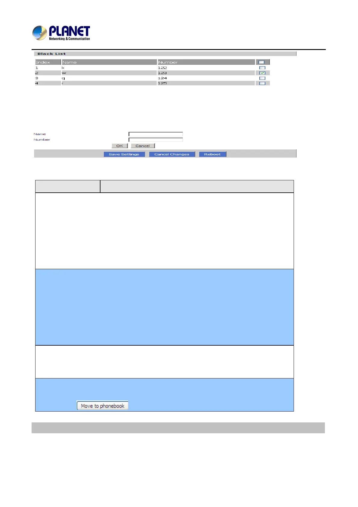 button to move the black list to the phonebook Step 2. Click