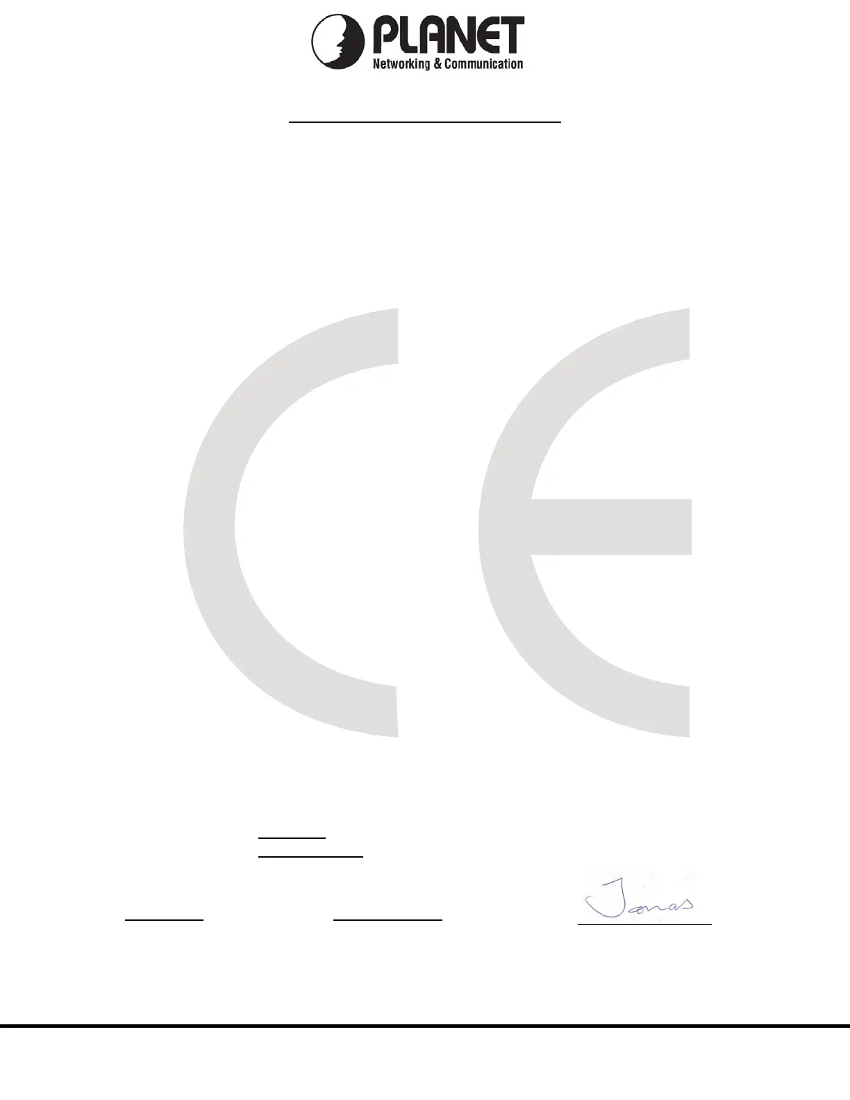 Manufacturer‘s Name : Planet Technology Corp.