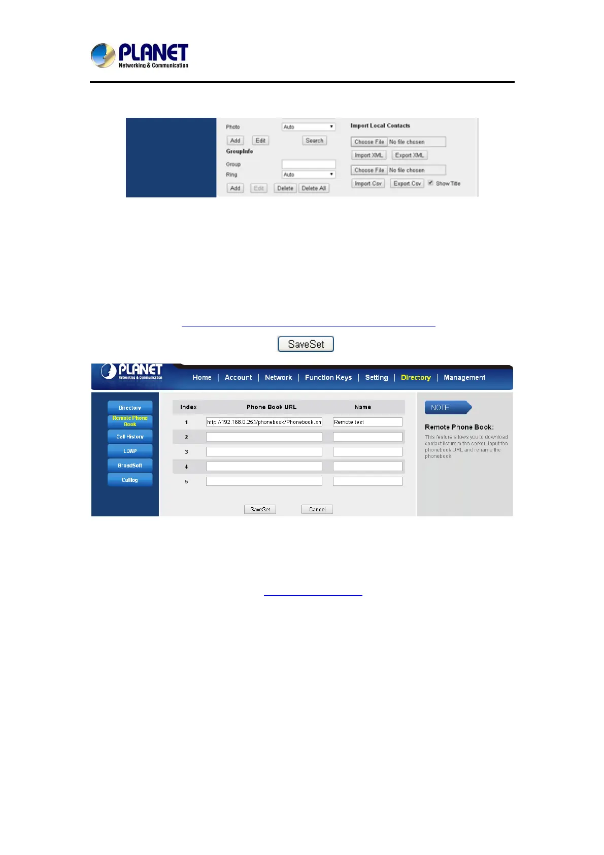 1. Login the web page and click DirectoryÆRemote Phone Book