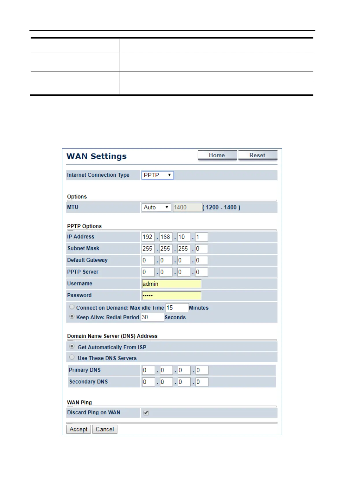 Figure 5-27 WAN Settings – PPTP