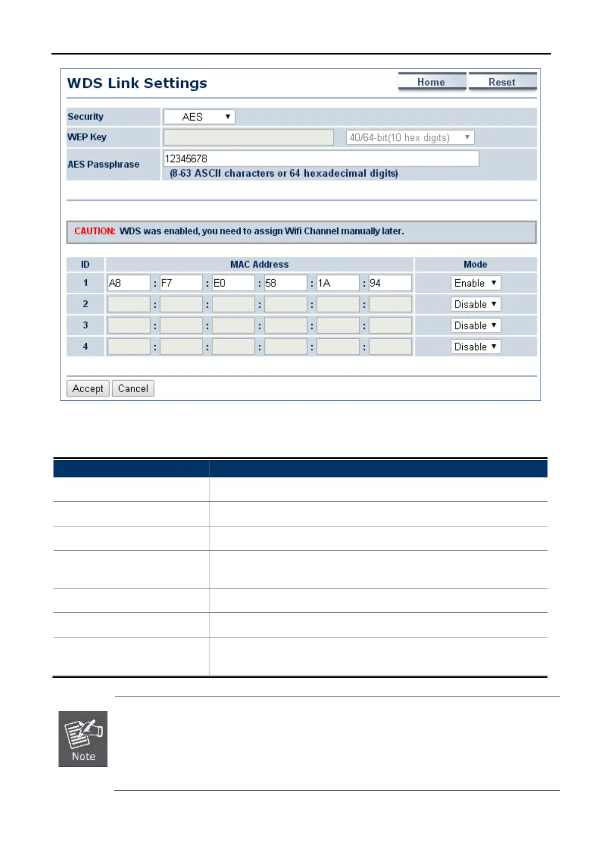 1. The WDS link setting is only available in WDS Bridge mode and is communicating through
