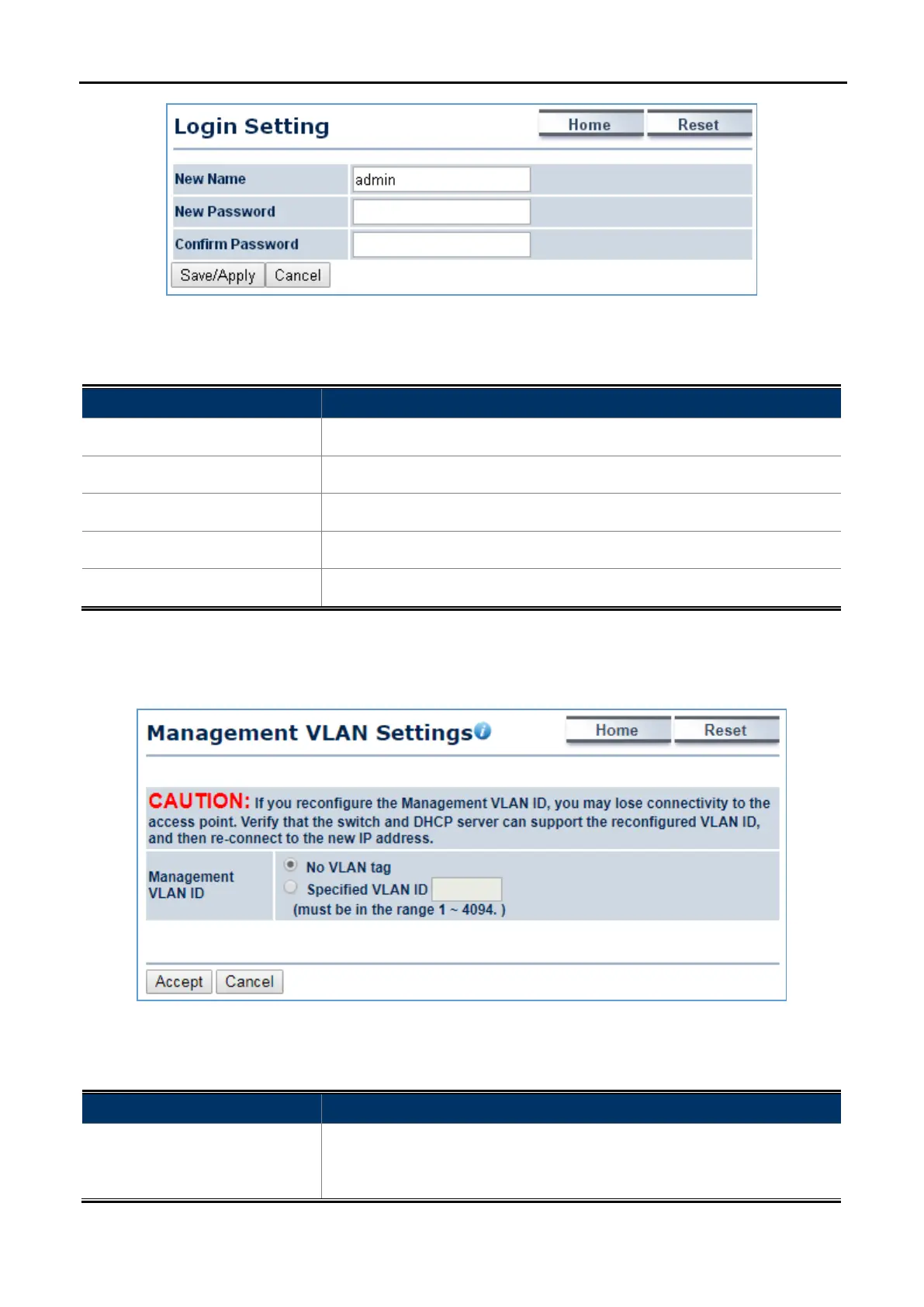• Management VLAN ID