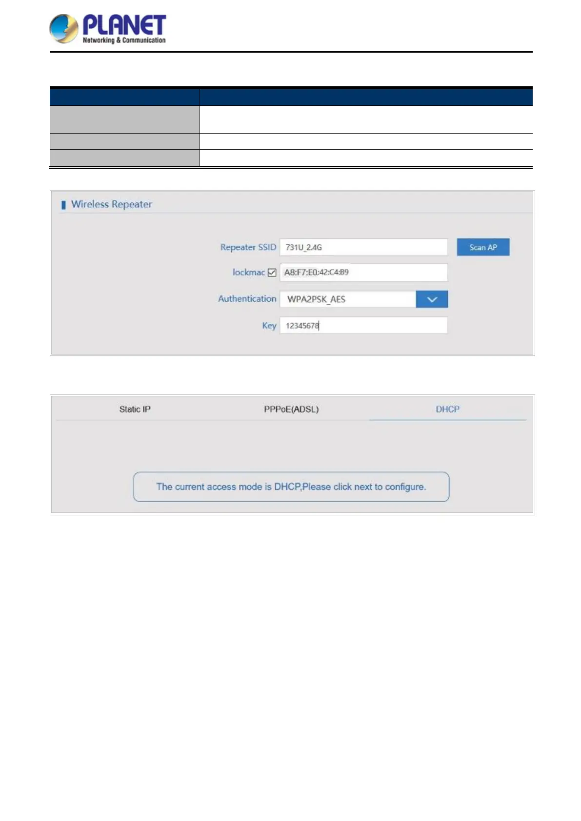 Repeater SSID Enter the root AP’s SSID or press “Scan AP” to select
