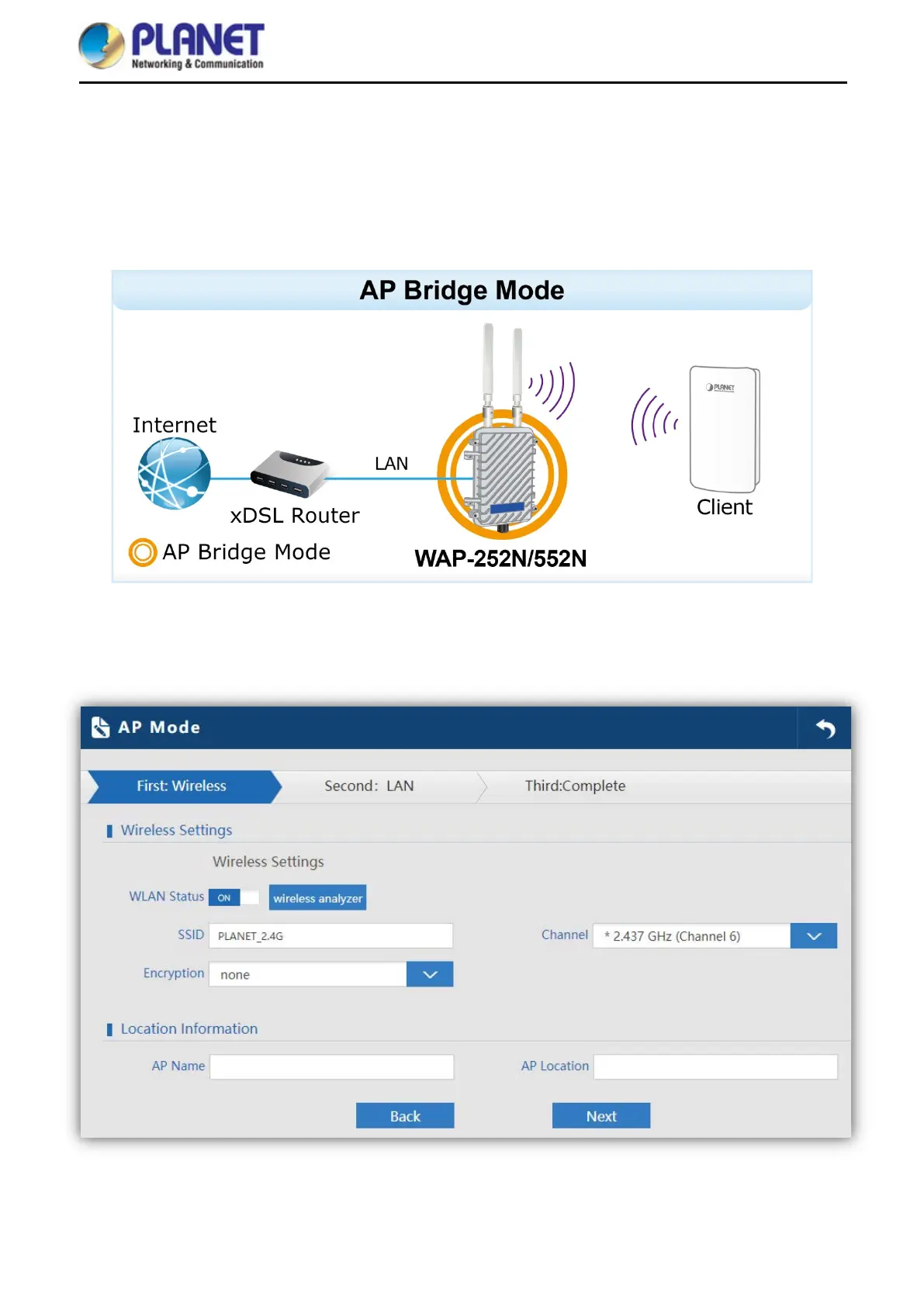 Planet WAP-252N - AP Mode Configuration; Bridging Wireless and LAN Interfaces