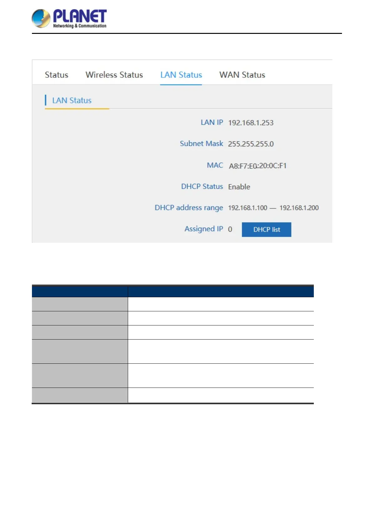 LAN IP It shows the IP of the AP. Default is 192.168.1.253