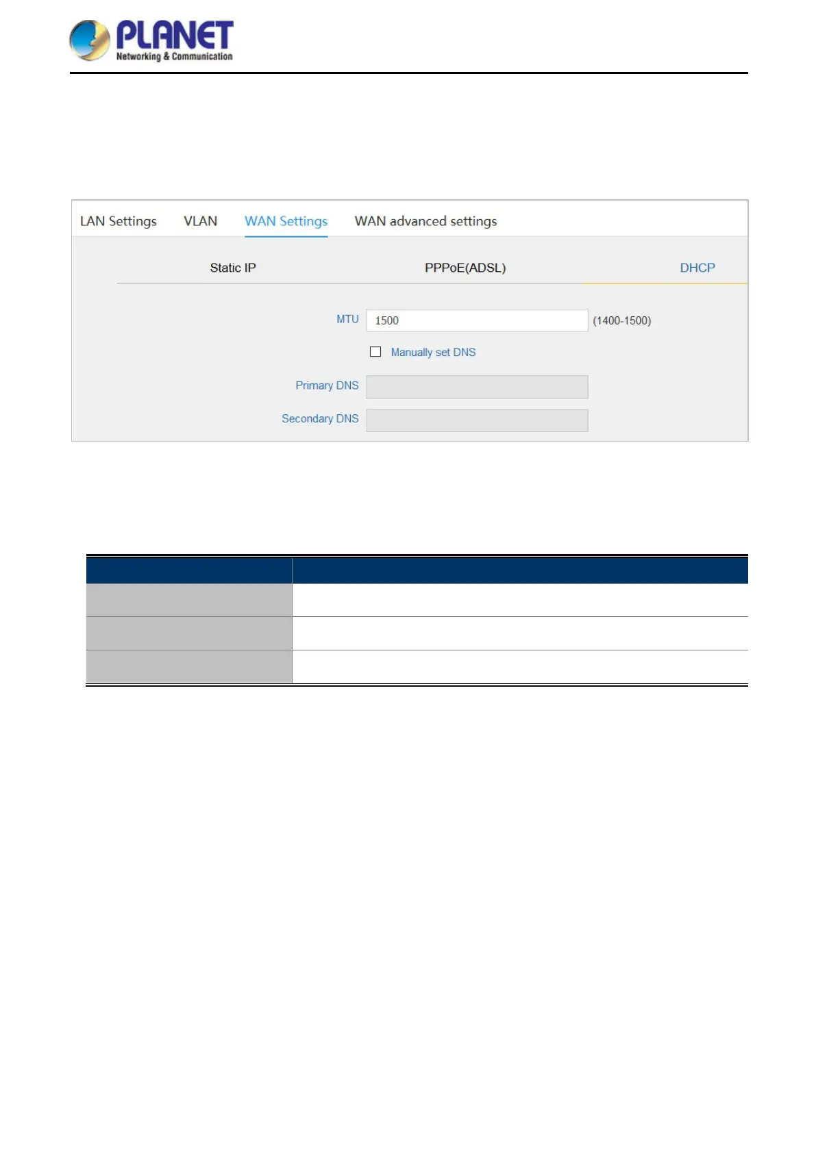 Choose “DHCP” and the router will automatically obtain IP addresses, subnet masks and gateway addresses