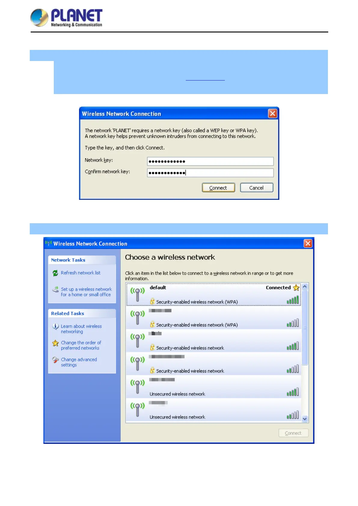 (1) The Wireless Network Connection box will appear