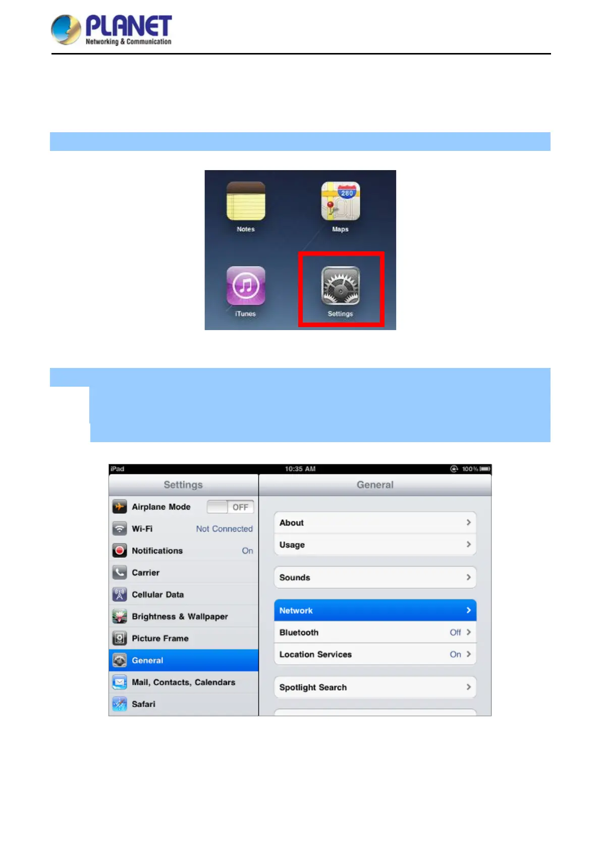 Step 1: Tap the [Settings] icon displayed in the home screen