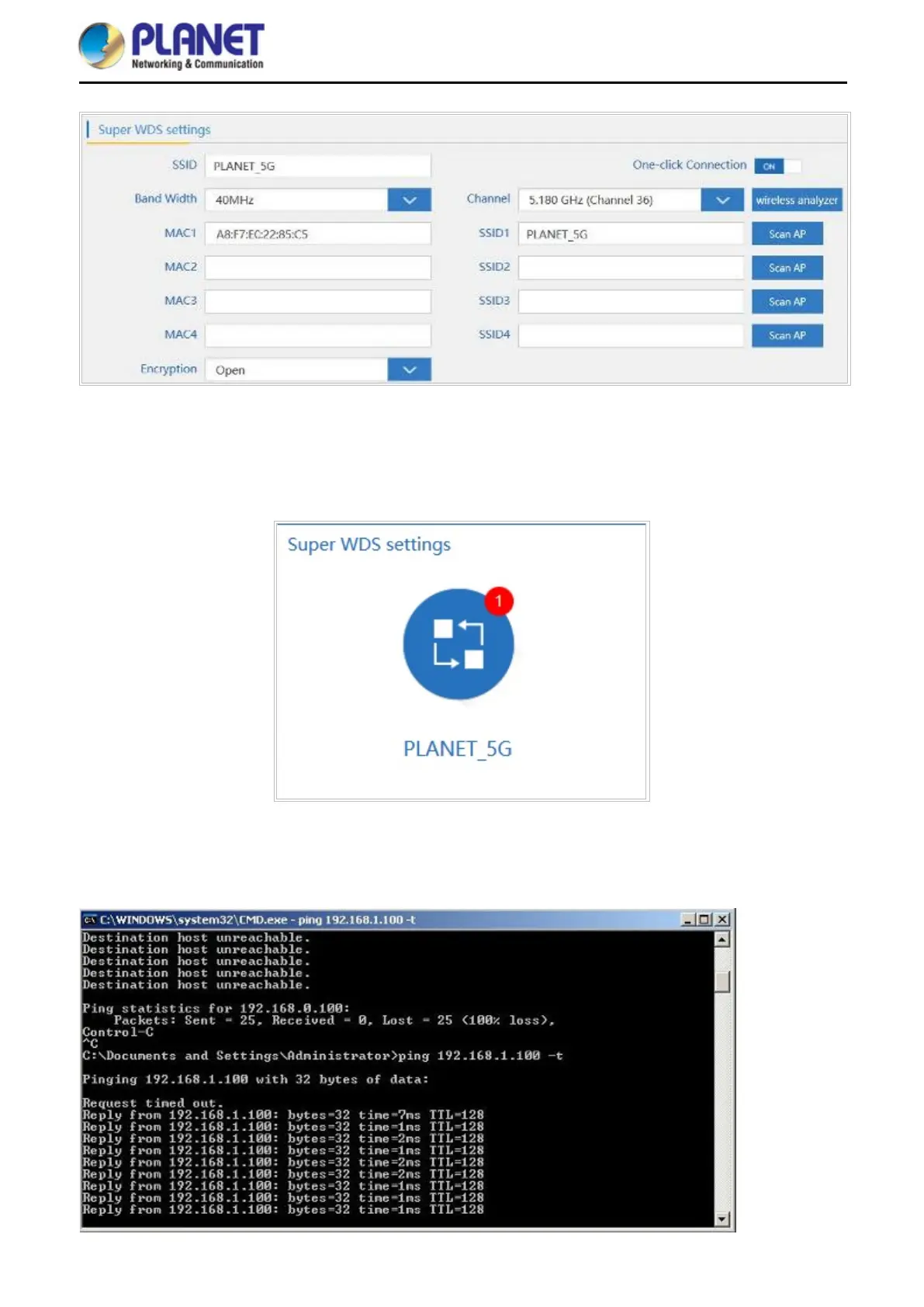 Step 7. Use command line tool to ping each other to ensure the link is successfully established.