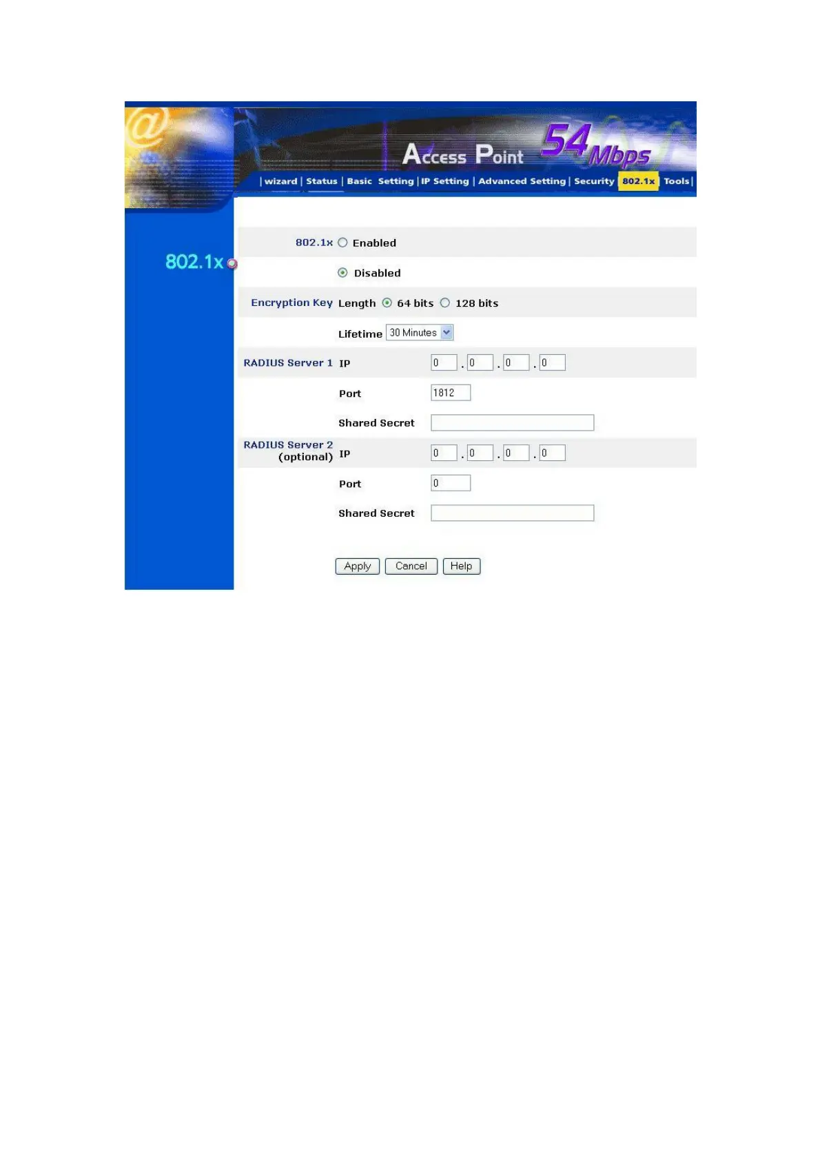 7. Click “Apply”. The 802.1x settings will take effect right after WAP-4000 reboots itself.