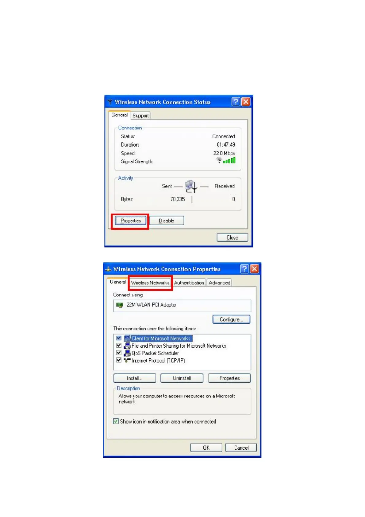 5. Click “Properties” of one available wireless network, which you want to associate with.
