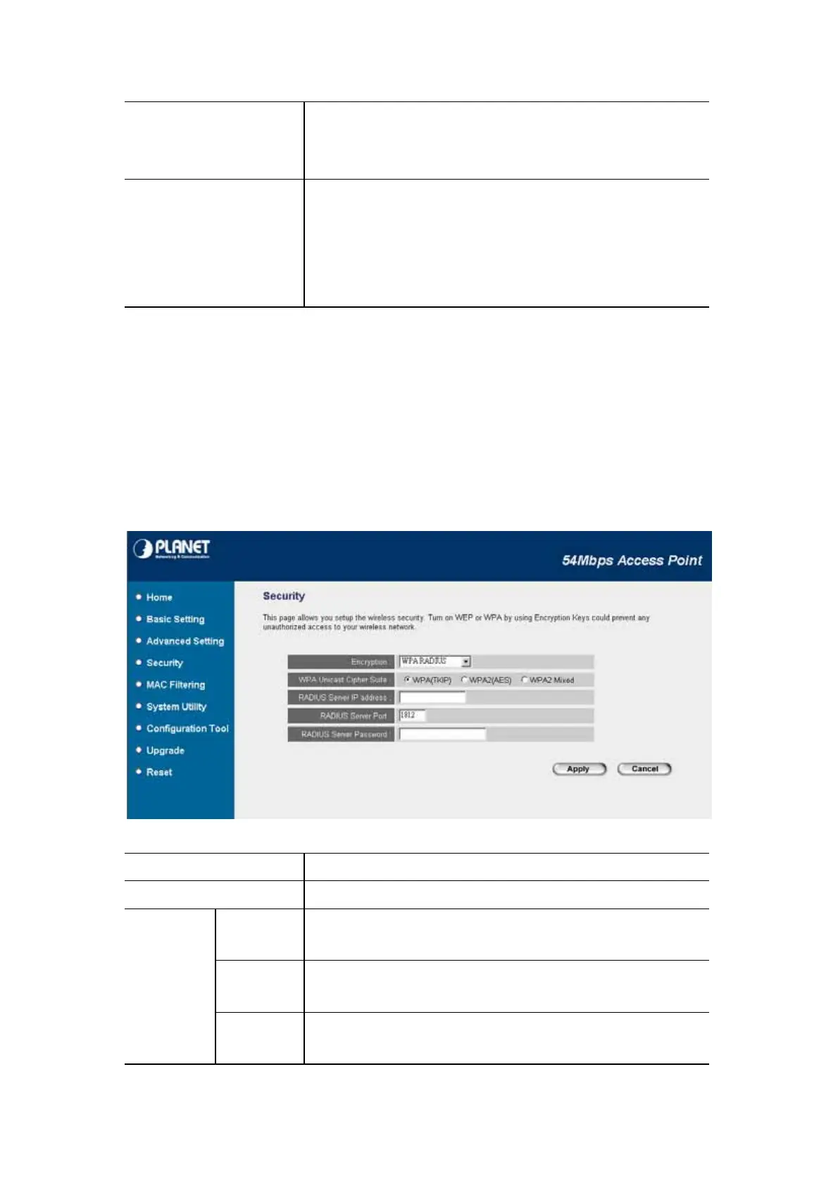 Encryption Select “WPA RADIUS” in this option.