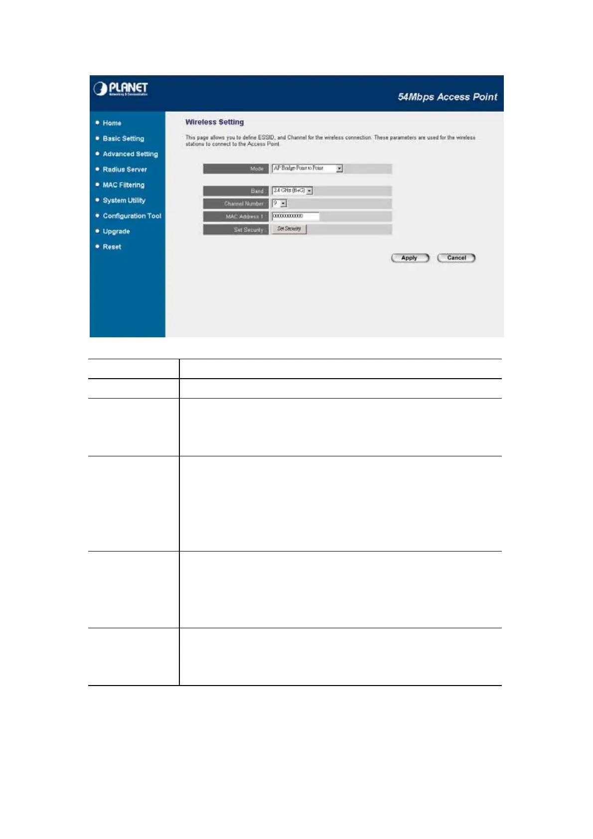 “Set Security” button and refer to section “3.2.8 Security setting for bridge mode”
