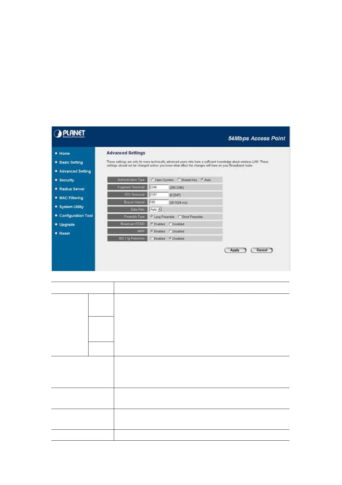 Fragment Threshold “Fragment Threshold” specifies the maximum size of packet during the