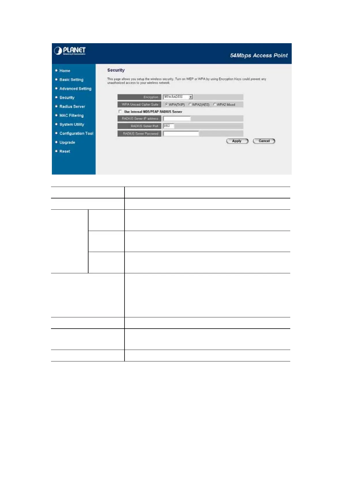 Encryption Select “WPA RADIUS” in this option.