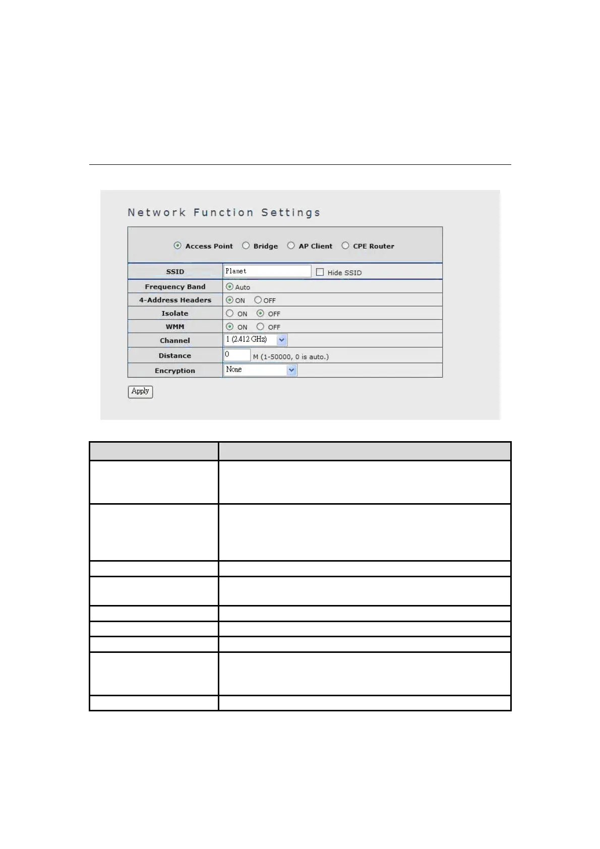 SSID It shows the SSID of this WAP-8000.