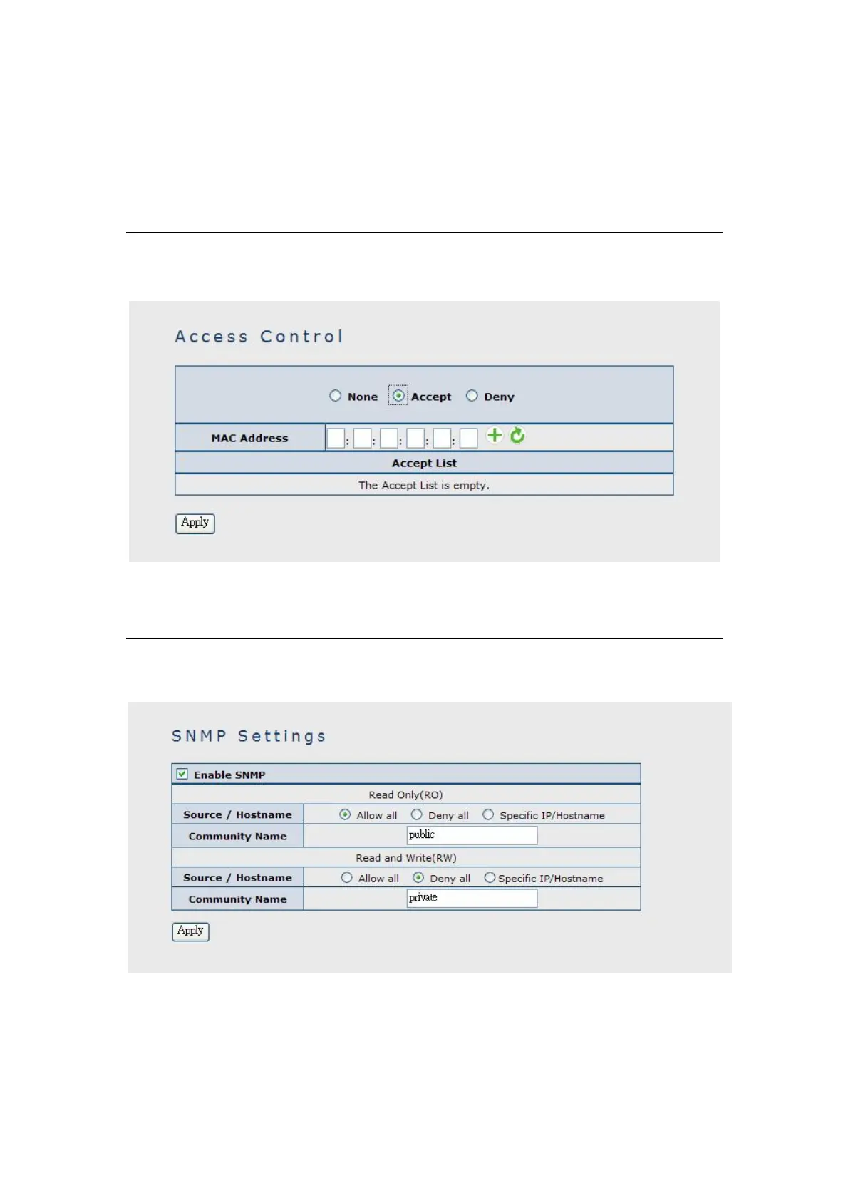Planet WAP-8000 - Chapter 7 Security; Access Control; SNMP Settings