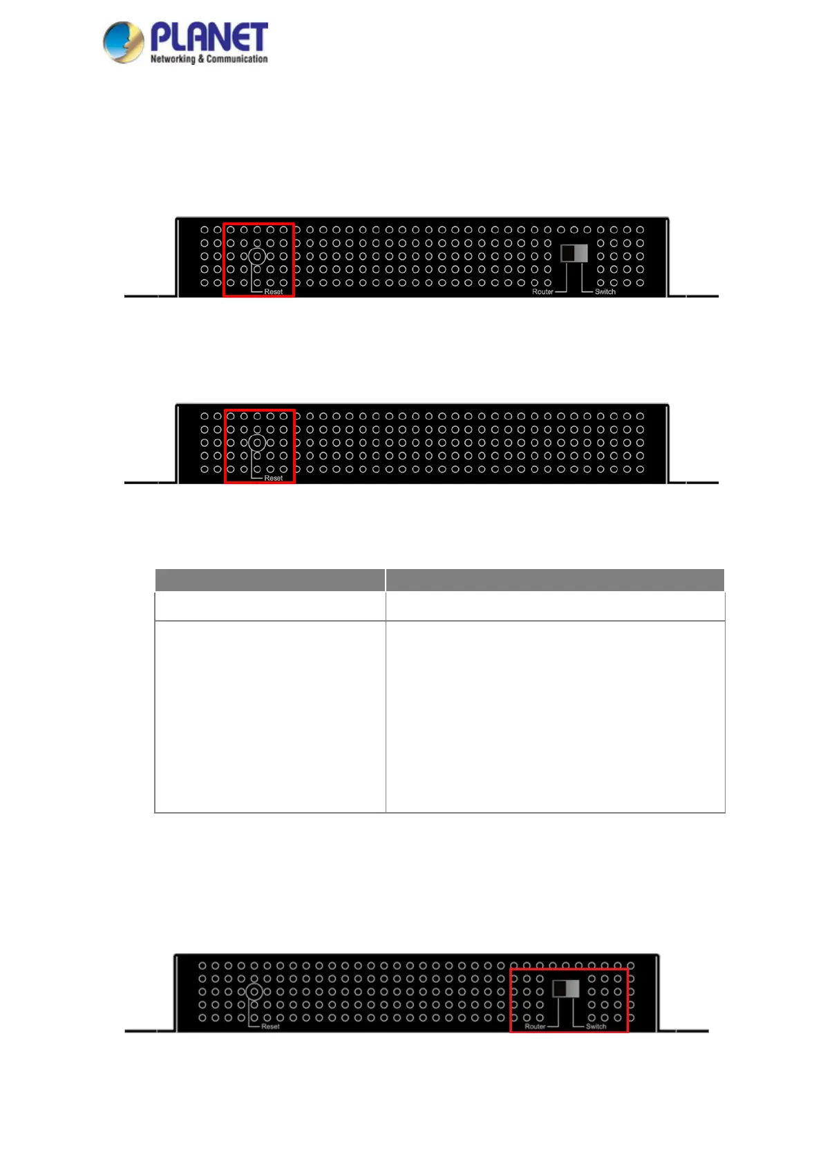 system or resetting to factory default. The reset buttons are shown in Figures 2-3 and 2-4 and following is the