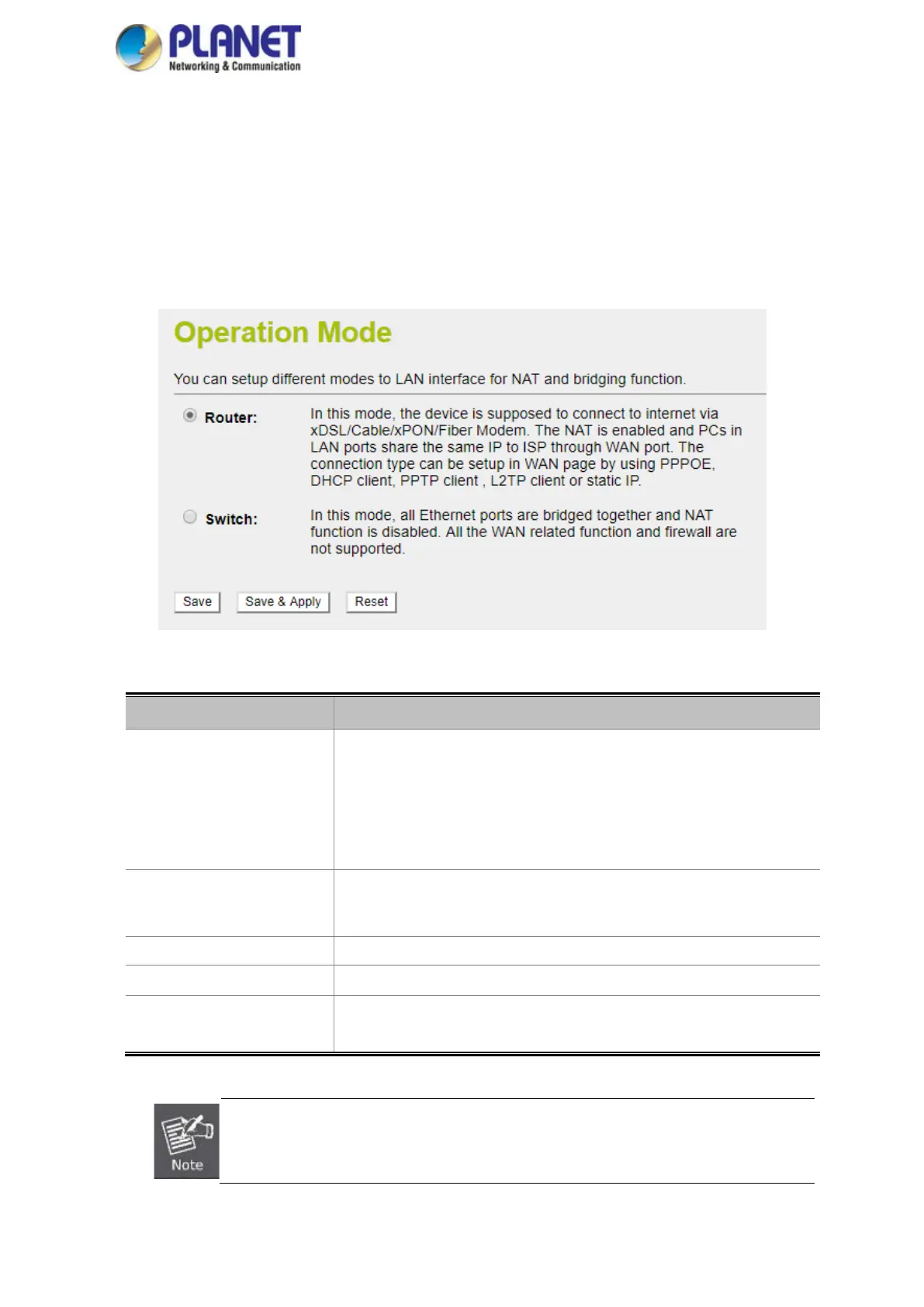 For the WGR-500-4P model, if you want to set a different mode between router and switch, it