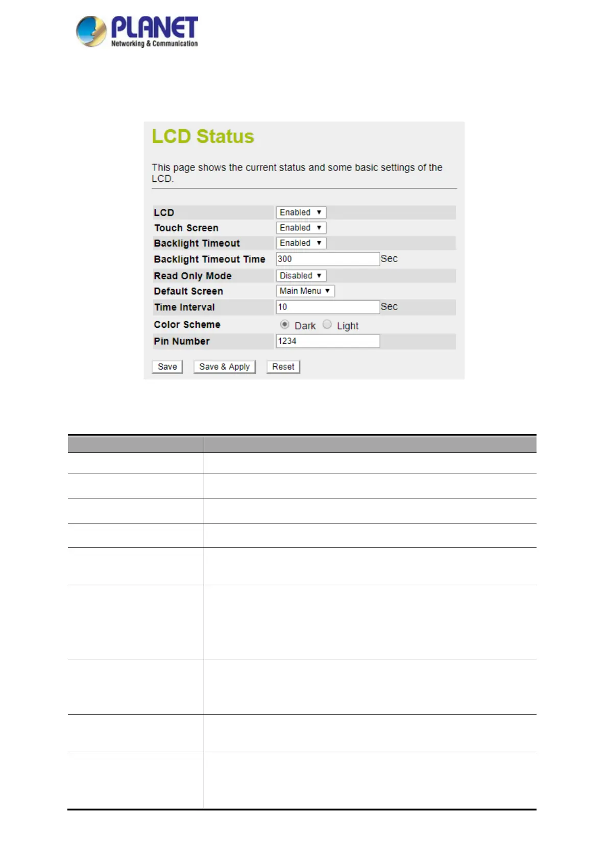 Pin Number It is password. For security reason, when user changes configuration from LCD,