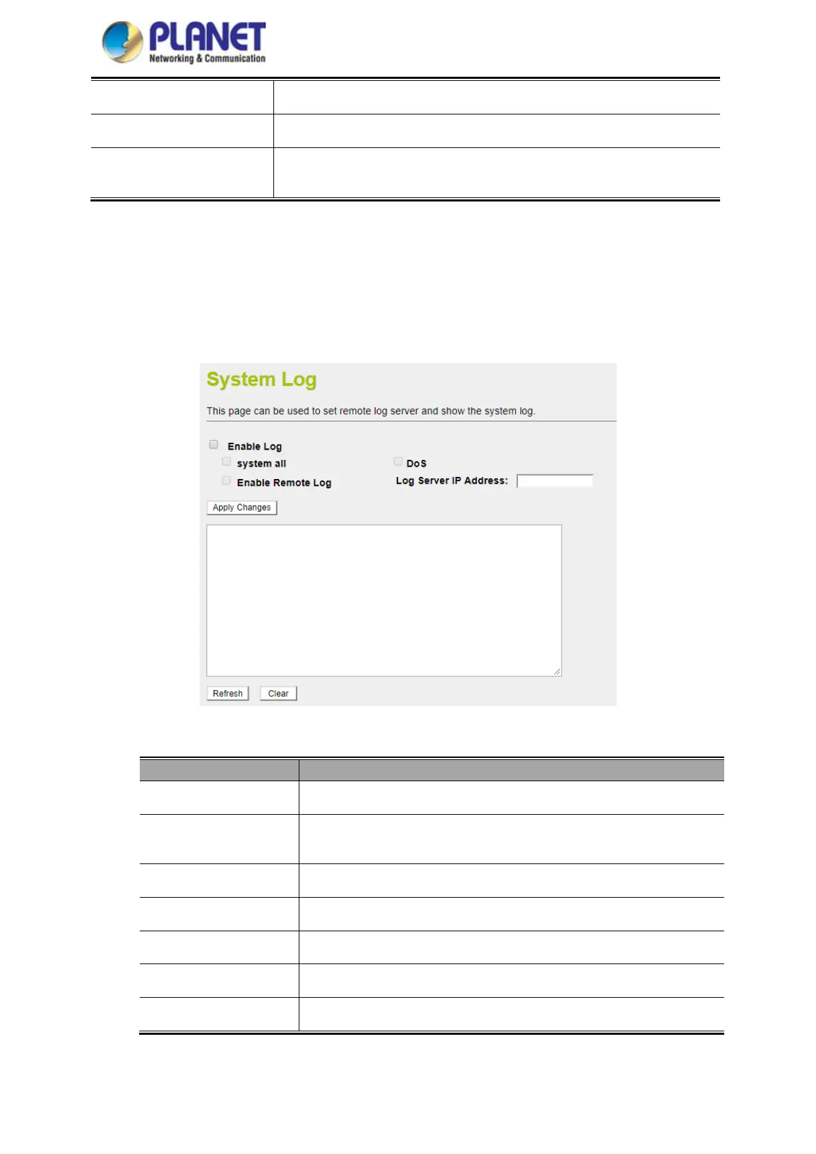This section will help you to configure the settings of system log as shown in Figure 4-24. You can check the box