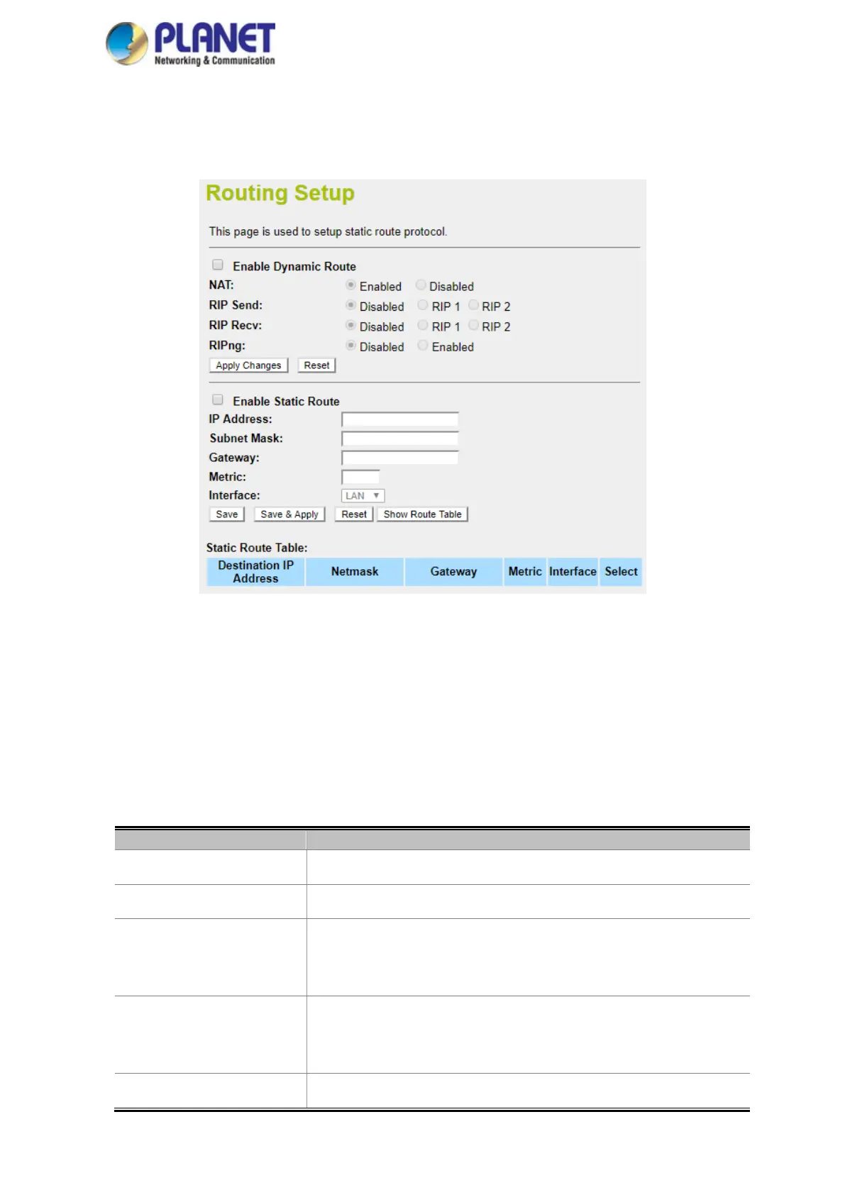 Enable Dynamic Route Click this box to enable Dynamic Route.