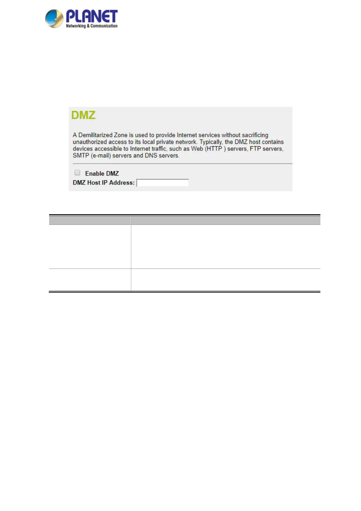 Check the box to enable DMZ function. If the DMZ Host Function is enabled,