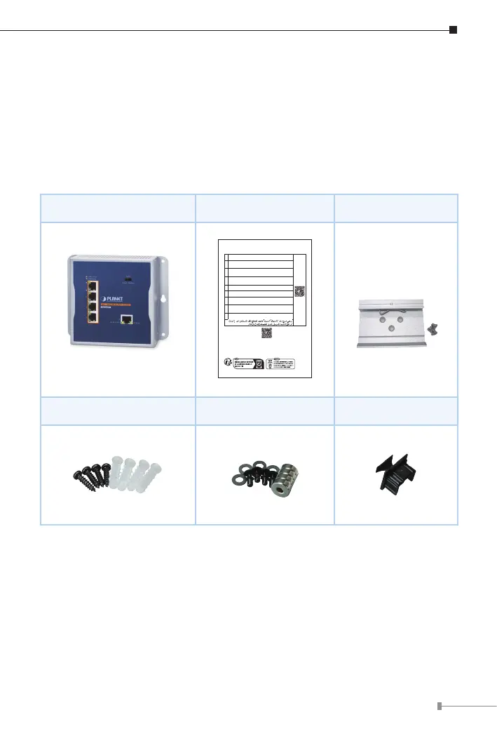 Industrial PoE Extender x 1 QR Code Sheet x 1 DIN-rail Kit x 1
