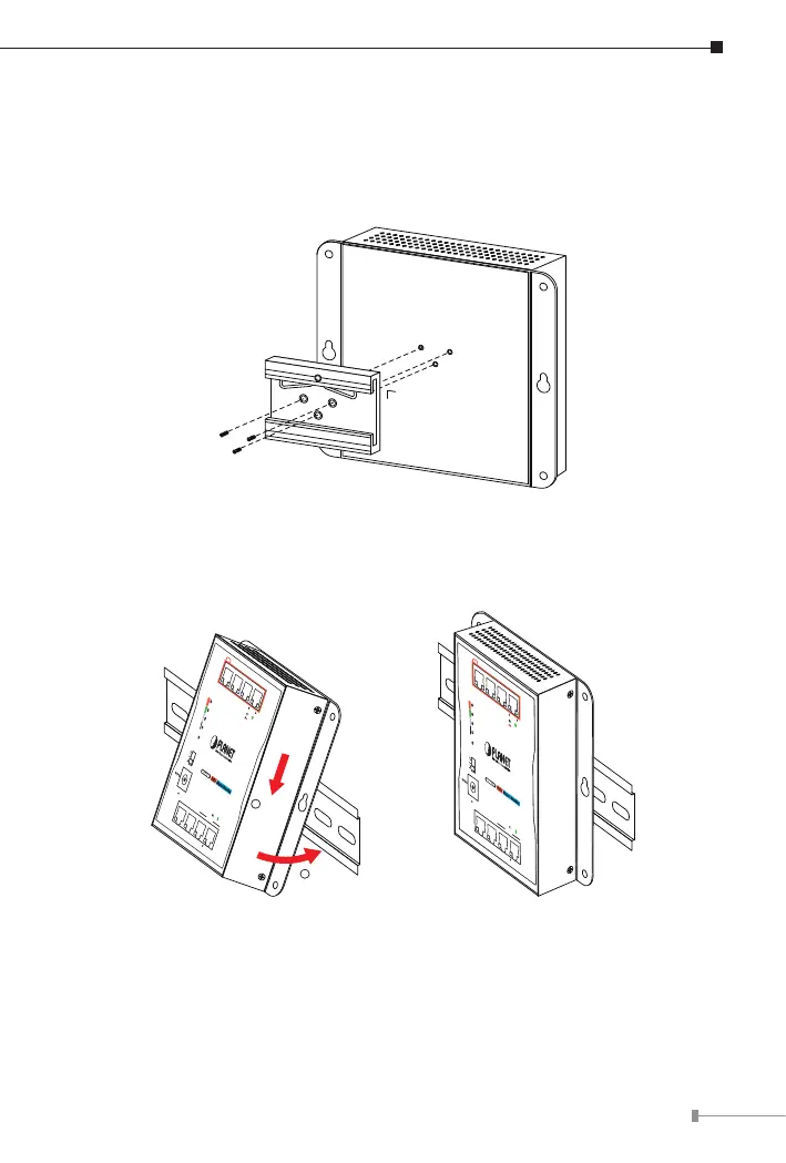 Step 1: Screw the DIN-rail bracket on the Industrial PoE Extender.
